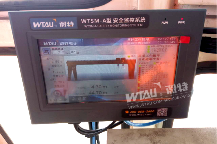 微特為中鐵十二局配備的WTSM-A-03型安全監(jiān)控系統(tǒng),滿足國家標(biāo)準(zhǔn)對提梁機(jī)安全監(jiān)控的要求,具有常用的通訊接口,有獨(dú)立并可擴(kuò)展的I/O功能,整機(jī)數(shù)據(jù)采用Modbus或Profibus通訊,對吊機(jī)具有實(shí)時監(jiān)控、動態(tài)顯示、聲光報警、數(shù)據(jù)備份以及密碼保護(hù)等功能,且儀表自身具有抗干擾性強(qiáng),操作界面好,通用性強(qiáng)等優(yōu)點(diǎn)。