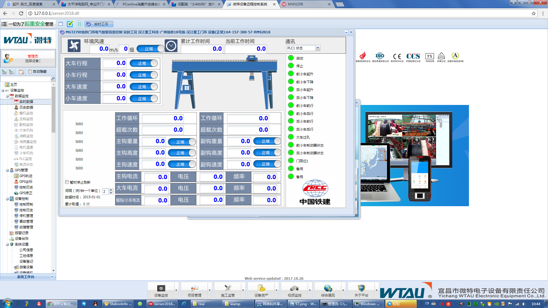 MGTZ70t地鐵門吊電氣智能信息控制系統,包含門吊數據監控和視頻監控兩部分。實現門吊使用過程中全方位的數據監控和關鍵部位的視頻圖像監控以及以上數據和圖像的存儲等功能。可實現遠程PC電腦實時遠程查詢監控,數據回放、曲線擬合等功能;可實現手機APP遠程實時查詢設備狀態,數據抽取查詢等功能。