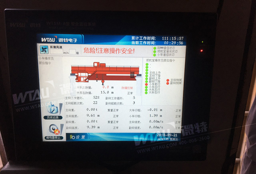 近期由微特配套的WTSM-A型起重機安全監控管理系統在遼寧中信錦州金屬股份有限公司內完成最終特檢院驗收工作,成功交付使用。