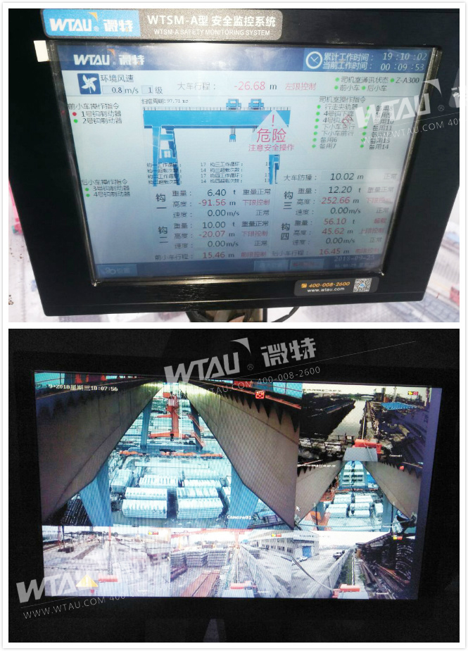 圖為WTSM-A龍門吊監控系統主機及視頻監控顯示器