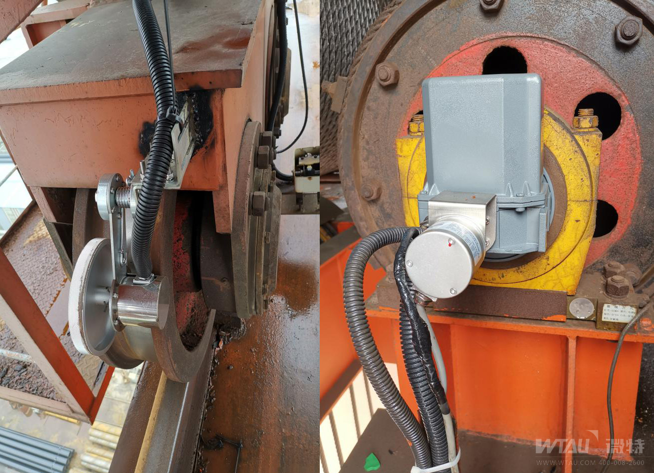 上下小車及大車行程采用計程輪的方式采集其數據,高度采用多功能行程限位器加編碼器的方式采集其高度數據。同時采集其速度等相關數據,使操作人員可以通過直觀的數據變化觀察其大小車的位置,每個鉤的高度等相關數據,為設備的安全運行提供更加安全的保障。