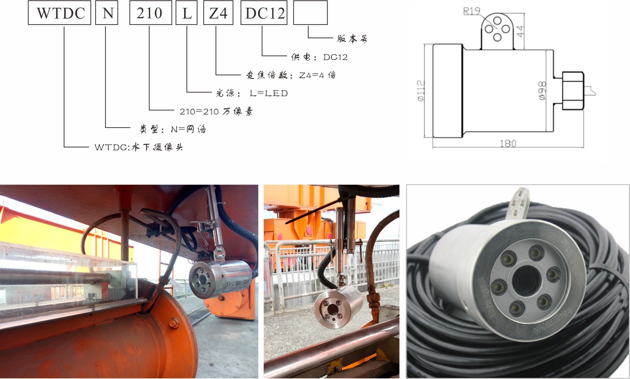 針對水電門機抓梁水下的盲點及痛點,本次為烏東德電站所配套的安全監控系統及抓梁水下可視化系統,為微特自主研發的WTDC型網絡高清水下視頻攝像系統 。
