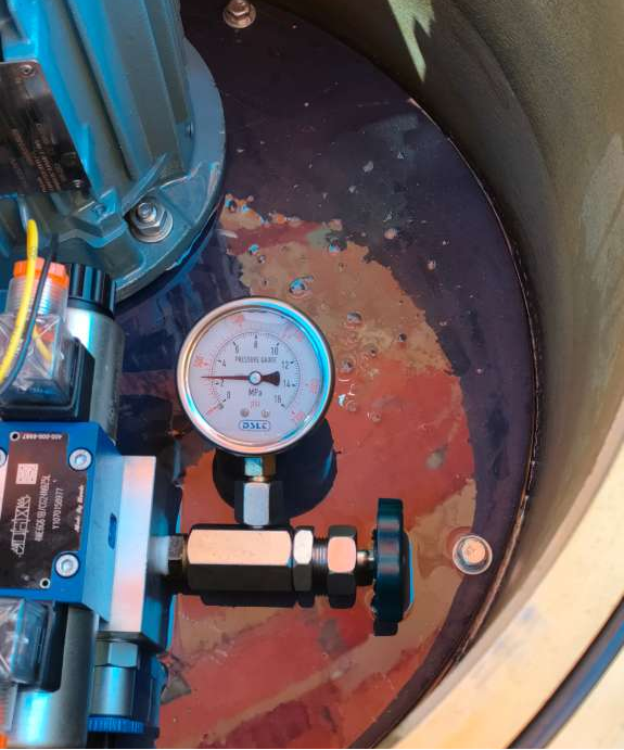 液壓泵站油箱采用10mm壁厚碳鋼材質,按 7MPa壓力設計制作。對油缸密封材料進行改進采用進口密封圈、雙層密封。油箱設置加油孔、放油孔、觀察孔。