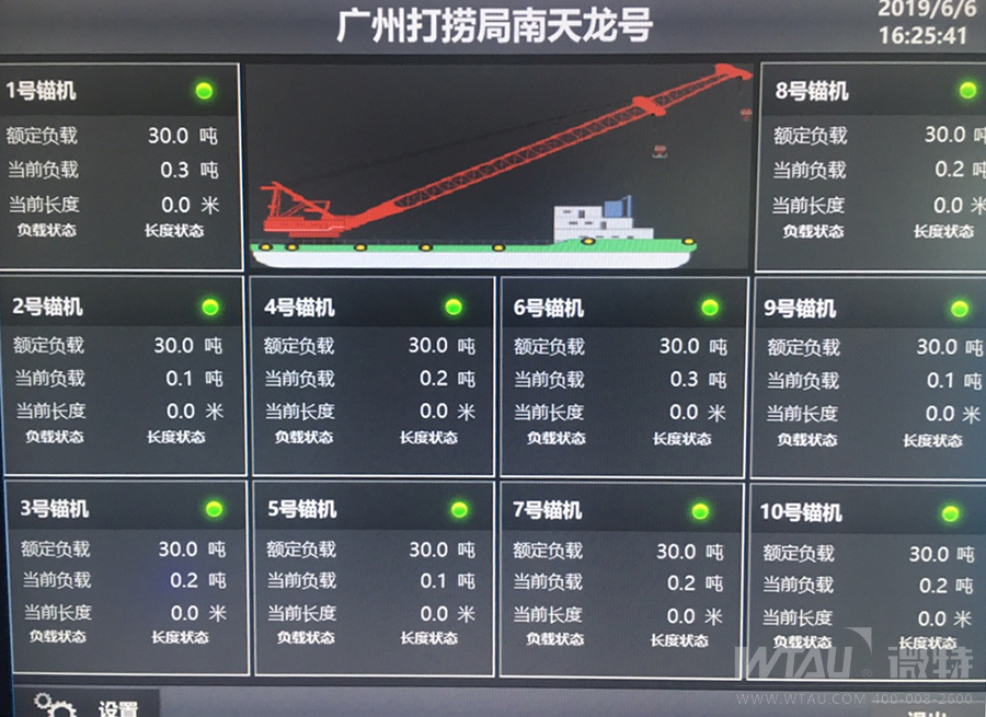 微特此次為南天龍號安裝的是數臺錨機監控系統。早在幾年前南天龍的900噸吊車和60噸吊車力矩儀都是由微特安裝,由于南天龍在六月七號要去馬來西亞作業,應海外用戶要求錨機必須有監控系統,廣州打撈局基于對微特產品的認可再次選擇了微特。
