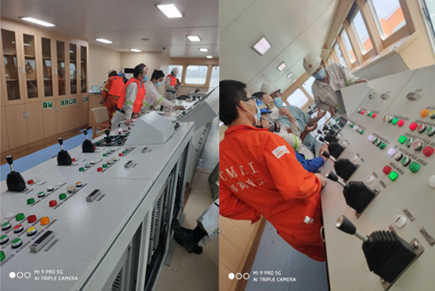 在安裝調試過程中,微特技術服務人員始終以客戶滿意為第一宗旨,現場同客戶協商解決遇到的各種問題,根據實際應用情況,現場為客戶修改應用程序以及主界面顯示程序等克服各項困難最終完成安裝調試,贏得客戶滿意。同時,該項目也通過中交三航,招商局重工和友聯船廠的三級驗收。