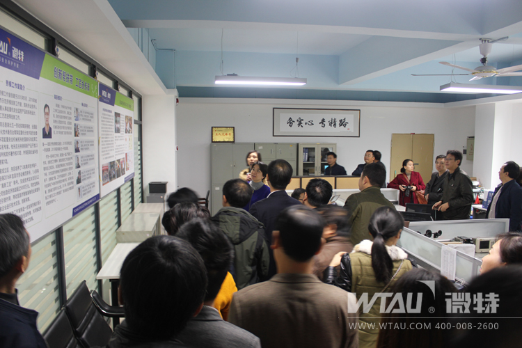 微特公司技術總監高鈺敏、工會主席王俐向朱主任一行匯報了勞模創新工作室的建設情況,取得的科技成果和人才培養成果。朱主任一行詳細調研了設計工作室、實驗室、眾創工坊和產品展示廳。當聽到高鈺敏勞模創新工作室一年創造了60多項專利成果,并培養出1名省五一勞動獎章獲得者、1名市勞動模范、1名“高新工匠”時,朱主任表達了贊賞和肯定。