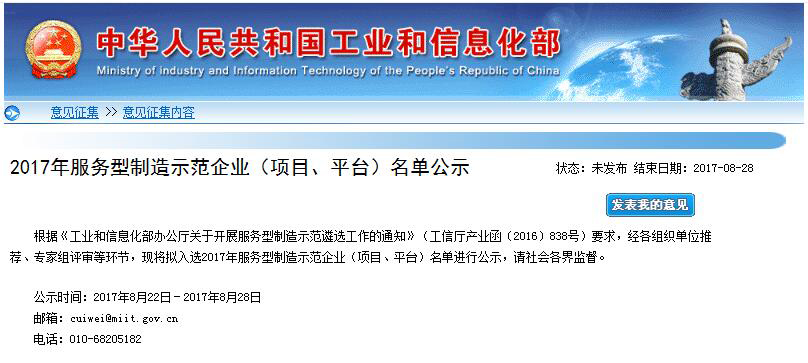 服務(wù)型制造示范平臺是工信部為貫徹落實《中國制造2025》關(guān)于發(fā)展服務(wù)型制造的戰(zhàn)略部署,按照《發(fā)展服務(wù)型制造專項行動指南》的目標(biāo)要求,遴選面向社會提供公共服務(wù)或面向市場提供專業(yè)服務(wù)的生產(chǎn)性服務(wù)機構(gòu)為示范平臺。