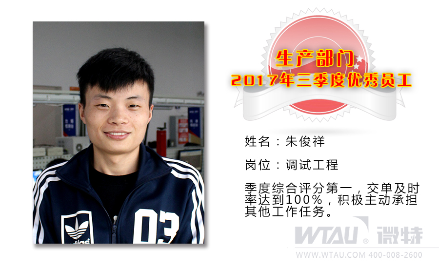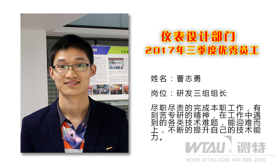三季度先進提名:生產部:楊開翔;儀表設計部:蔡小雨;聲波&市場營銷:倪秀;綜合流程部:劉滿君、陳曉燕 ;微特智慧谷:萬澤容