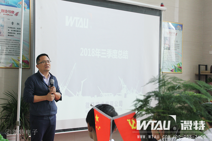 2018年10月7日,微特召開了第三季度表彰暨總結會。會議對第三季度微特大事記進行了回顧,表彰了各部門在第三季度工作中的先進工作者,并鼓勵員工在當前任務完成的情況下,不要松懈,繼續努力,爭取提前完成全年任務,提前完成3年規劃任務。