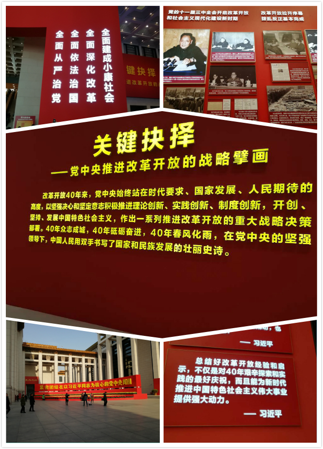 “偉大的變革——慶祝改革開放40周年大型展覽”設計了關鍵抉擇、壯美篇章、歷史巨變、大國氣象、面向未來等主題展區;運用歷史圖片、文字視頻、實物場景、沙盤模型、互動體驗等多種手段和元素,充分展示40年來特別是黨的十八大以來,人民群眾生產生活發生的偉大變遷,中華民族迎來了從站起來、富起來到強起來的偉大飛躍。