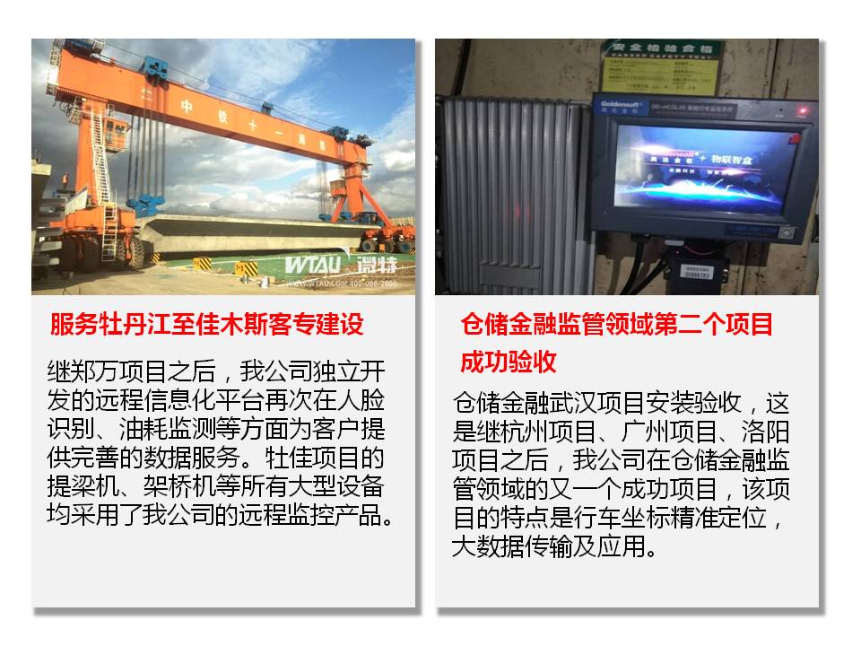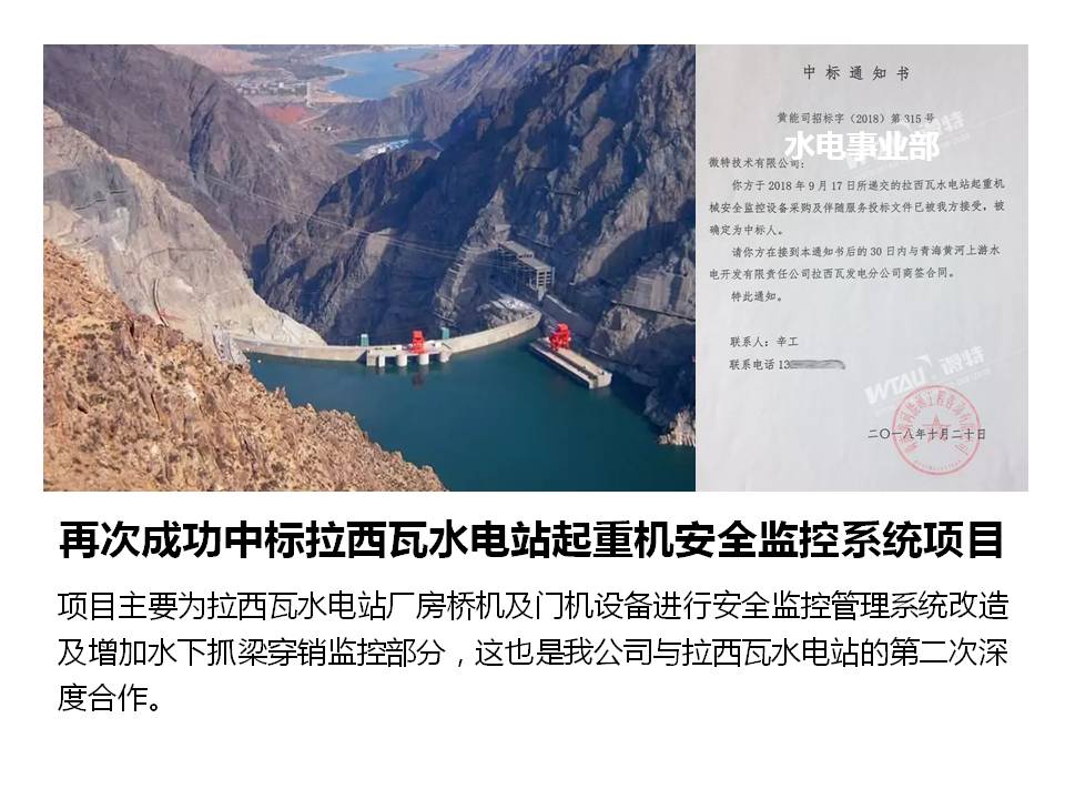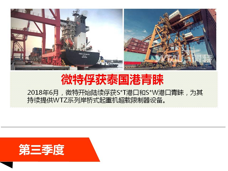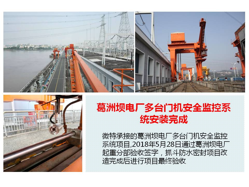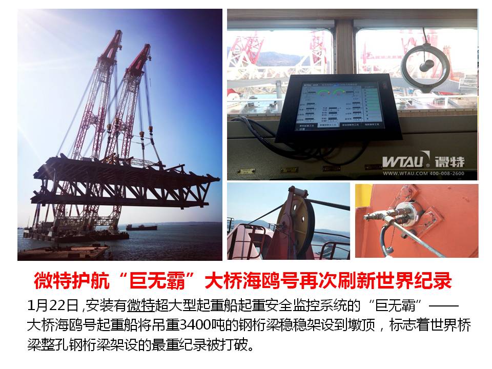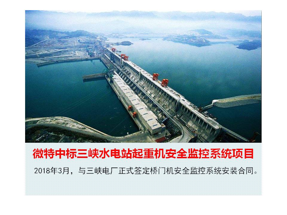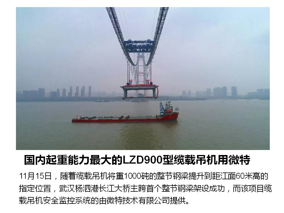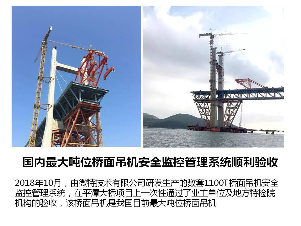 這一年,微特再次中標(biāo)三峽電站的所有壩頂門(mén)式起重機(jī)和廠房橋式起重機(jī)的安全監(jiān)控系統(tǒng)升級(jí)改造;成功進(jìn)入風(fēng)電裝備吊裝監(jiān)控、船用絞車(chē)安全監(jiān)控領(lǐng)域等;新的起重機(jī)施工過(guò)程點(diǎn)檢系統(tǒng)、防撞系統(tǒng)、壽命監(jiān)測(cè)系統(tǒng)投入使用。在大型裝備方面,2018年微特又摘獲數(shù)項(xiàng)中國(guó)起重機(jī)之最:國(guó)內(nèi)最大纜載吊機(jī)、最大的橋面吊、最大的廠房橋機(jī)安全監(jiān)控都采用微特產(chǎn)品,這再次證明了微特在大型重要起重機(jī)安全監(jiān)控方案的引領(lǐng)地位。