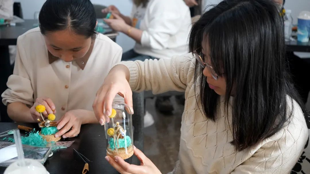 聯合光大銀行為女神們送來DIY手工花活動,在花藝師的指導和講解下,女職工們邊學邊做邊交流,一雙雙巧手將普通的花材變成了充滿自然美和生活美的花藝作品。