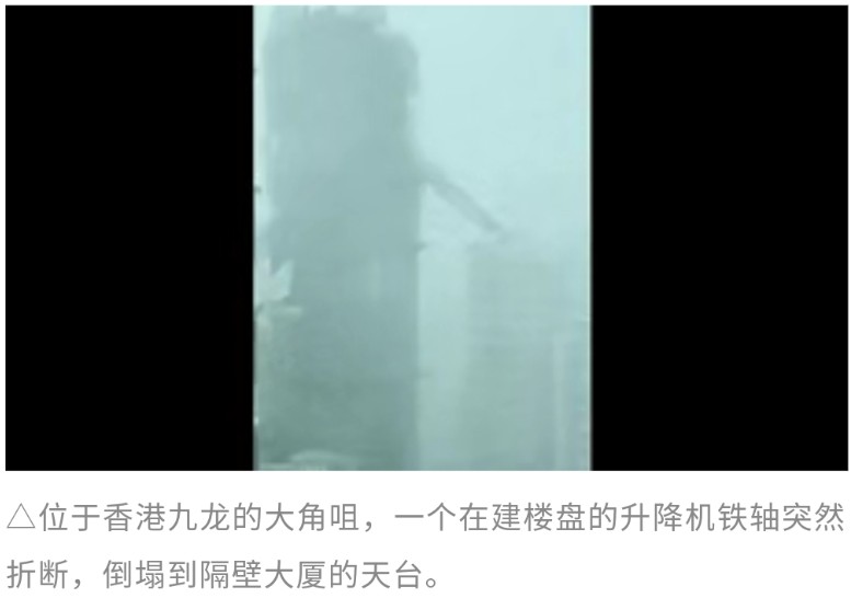 位于香港九龍的大角咀,一個在建樓盤的升降機鐵軸突然折斷,倒塌到隔壁大廈的天臺。警方接到報警后迅速到場,疏散了大廈內(nèi)的40名居民,所幸暫時無人受傷。