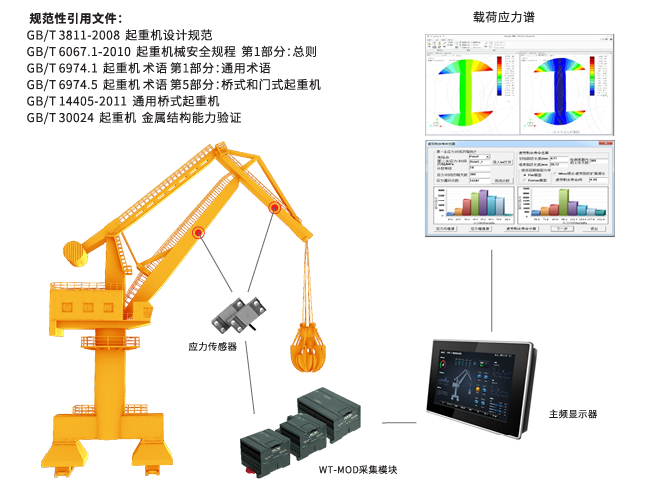 門座式起重機應力在線監(jiān)測系統(tǒng),是根據結構應力和材料強度計算開發(fā)制造的能實時監(jiān)測、顯示主臂在各種載荷