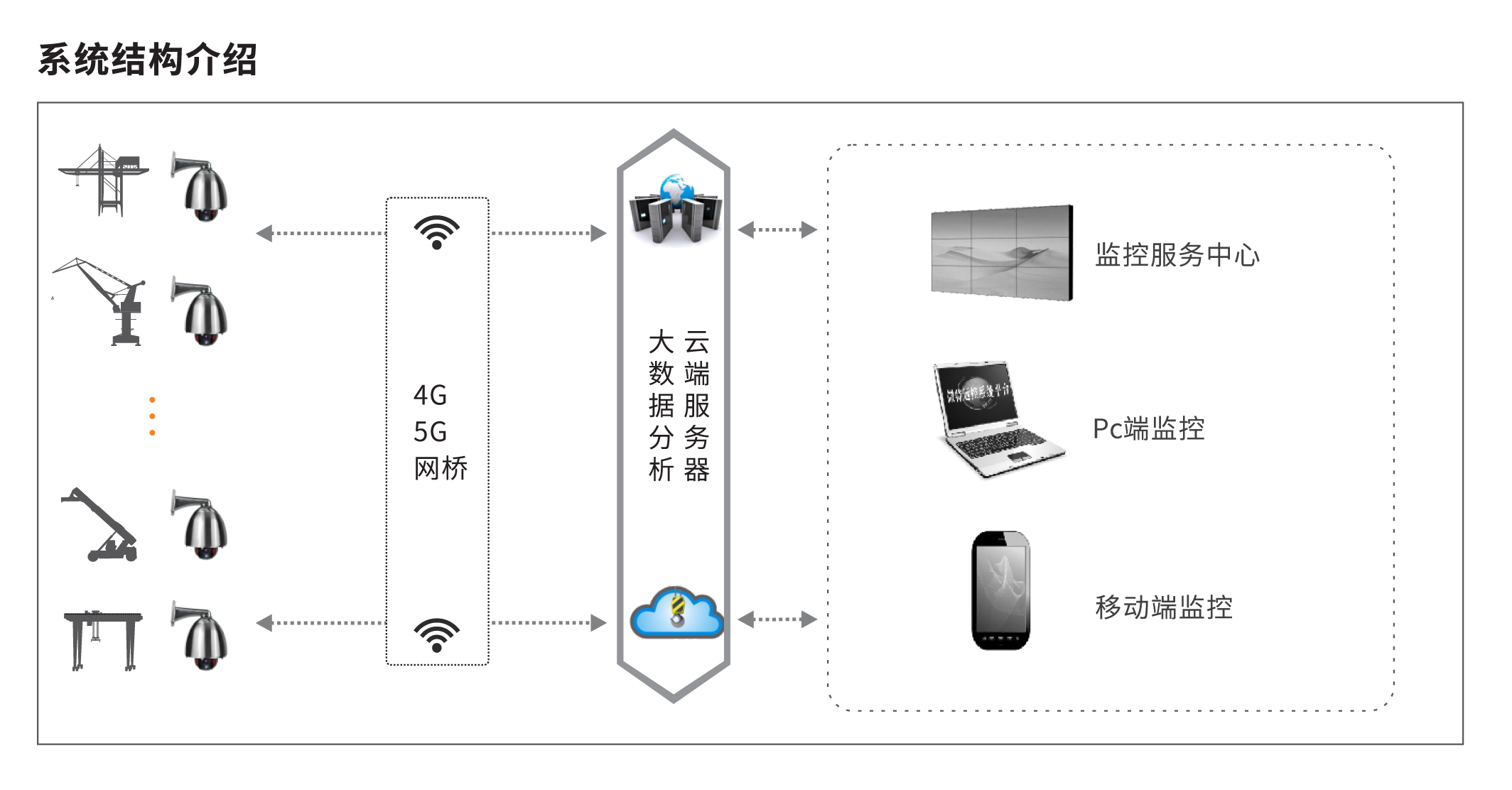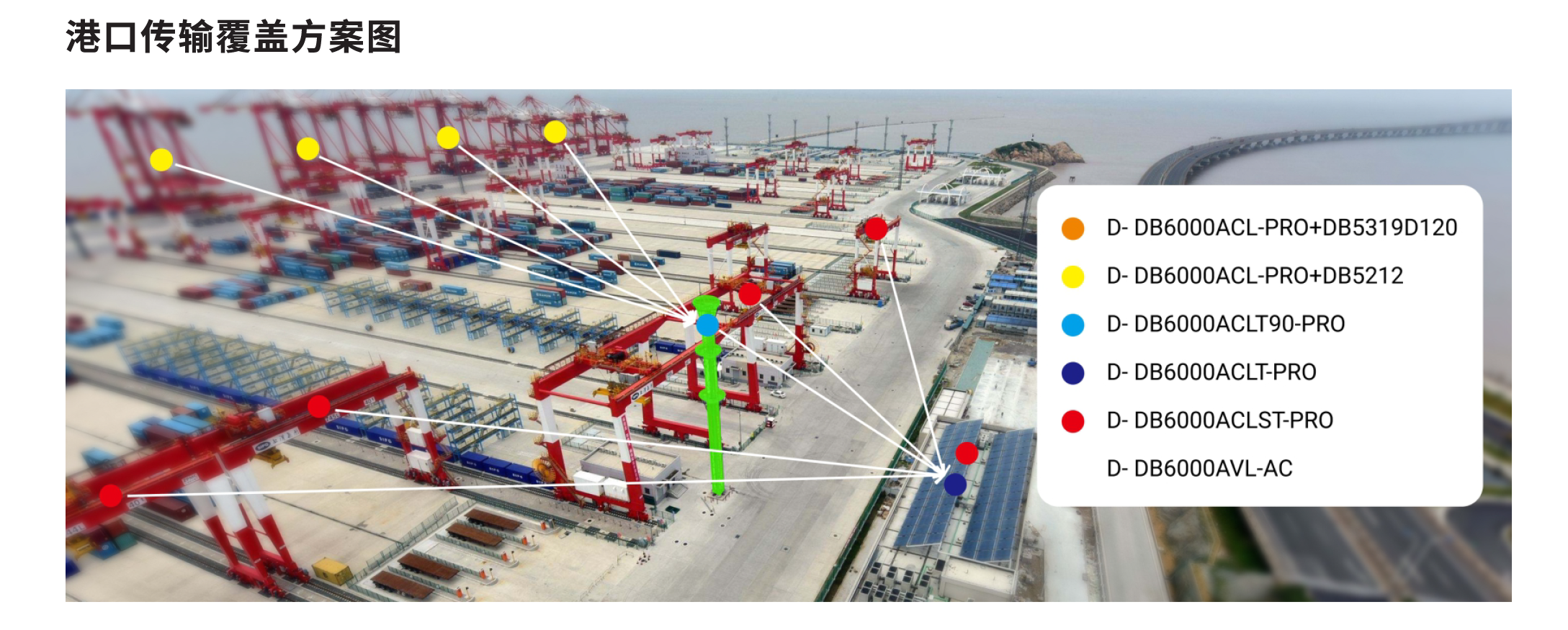 港口無線覆蓋方案:對于固定位置吊機可以采用點對點或多點的定向傳輸布局方式覆蓋,對于車載移動的設備可 以在吊車移動區域全向覆蓋在橋接定向傳輸的布局方式。