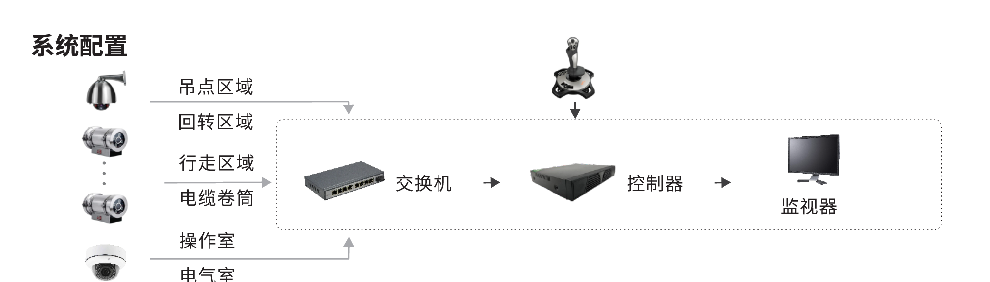 配備程序員二次開發的Wenb操作系統控制器,能夠完成攝像頭隨高度變化自動變焦特寫,對吊具路徑的自動跟 隨追蹤。內置T級存儲器回放調用數據無遺漏。