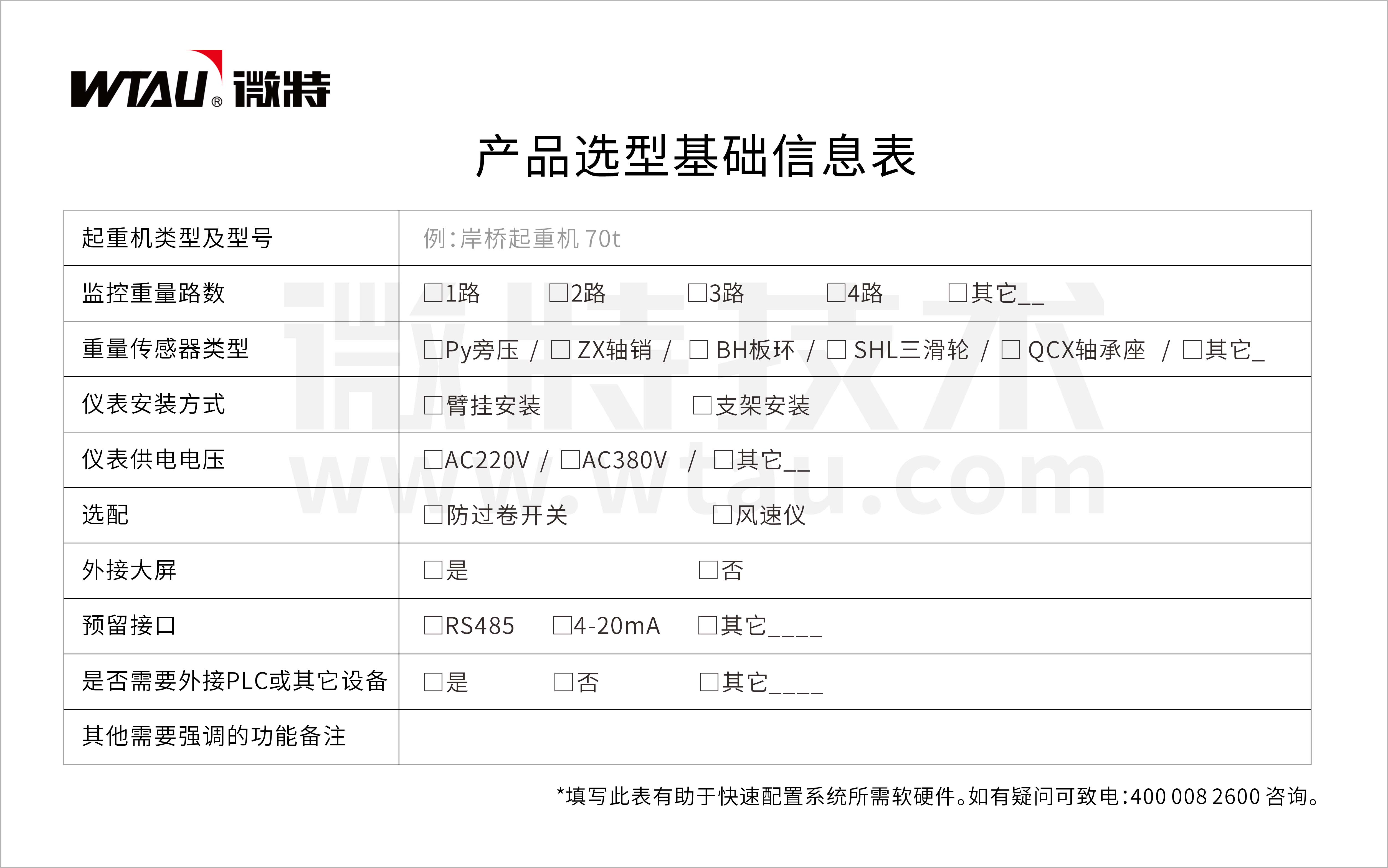 WTZ-A700起重量限制器裝備黑匣子功能,可升級為工作量統計功能,同時可監測4~12路載荷信號。