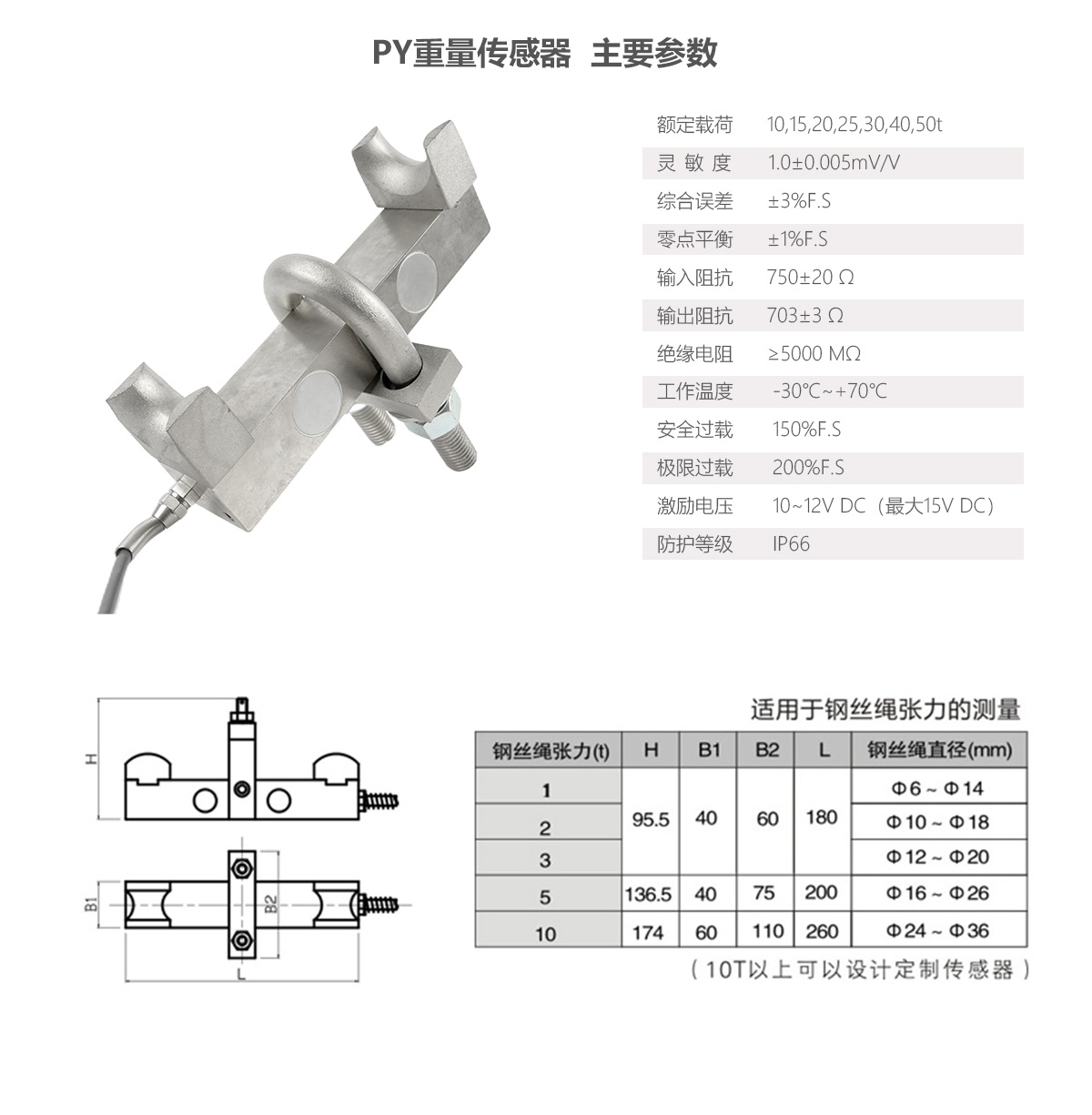 PY旁壓傳感器適用于鋼絲繩在起升結構上有固定端的起重設備