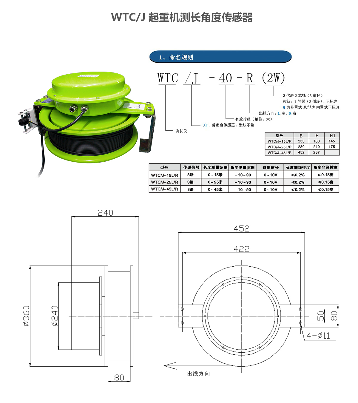 WTC/J起重機測長角度傳感器適用于具有伸縮吊的各類起重或其它類型機械。