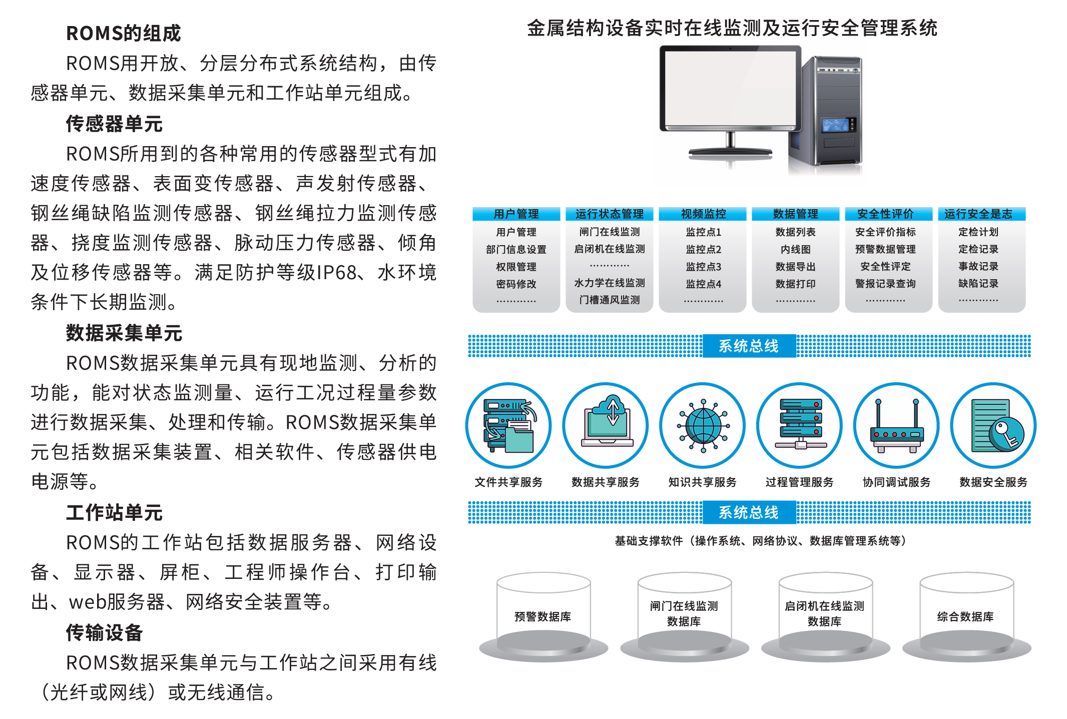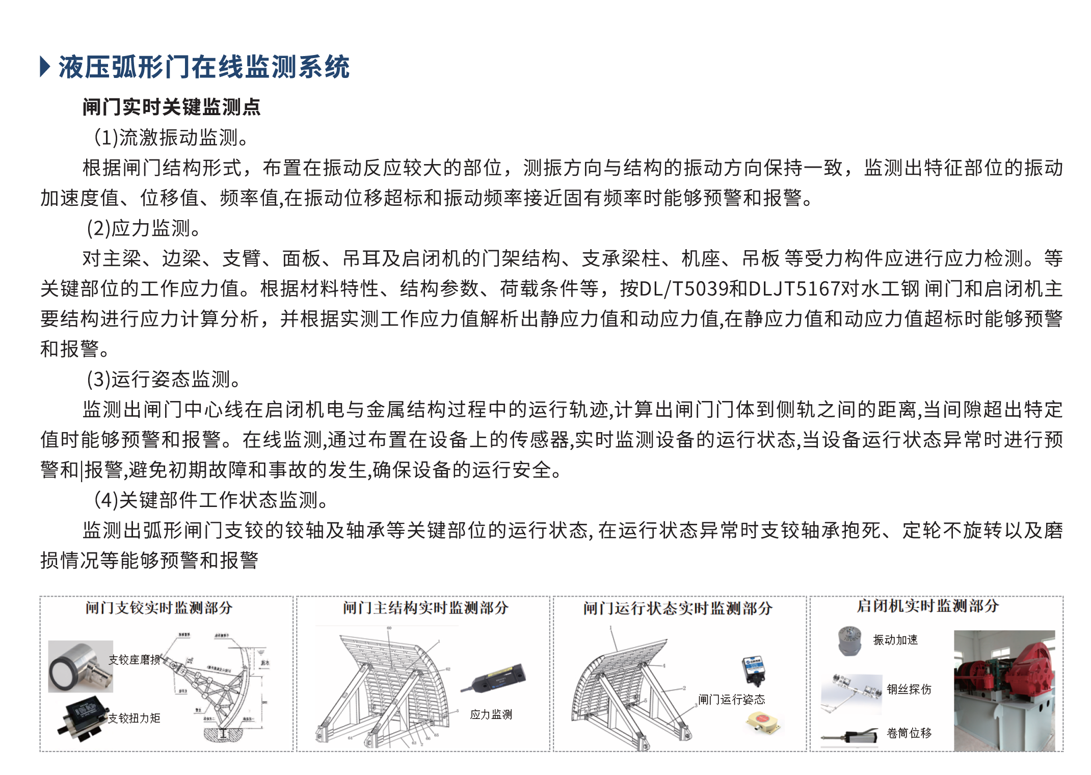 水工金屬結構實時在線監測的目的,是為研究水工金屬結構失效的內在原因,對水工金屬結構的關鍵參數進行實時 監測,進而建立起完整的水工金屬結構實時在線監測的安全評價體系。據相關數據統計,水工金屬結構設備失事破壞的 主要形式有強度破壞、振動破壞、動力失穩、結構變形、主要部件失效等。