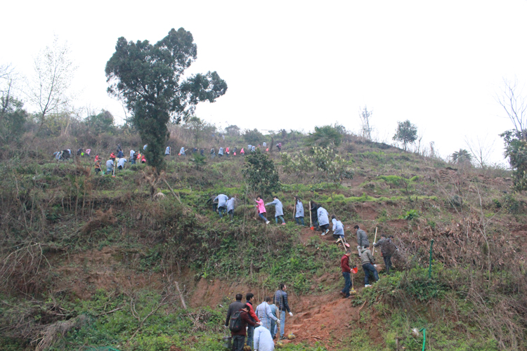 植樹小分隊開始上山,秩序井然,安全第一