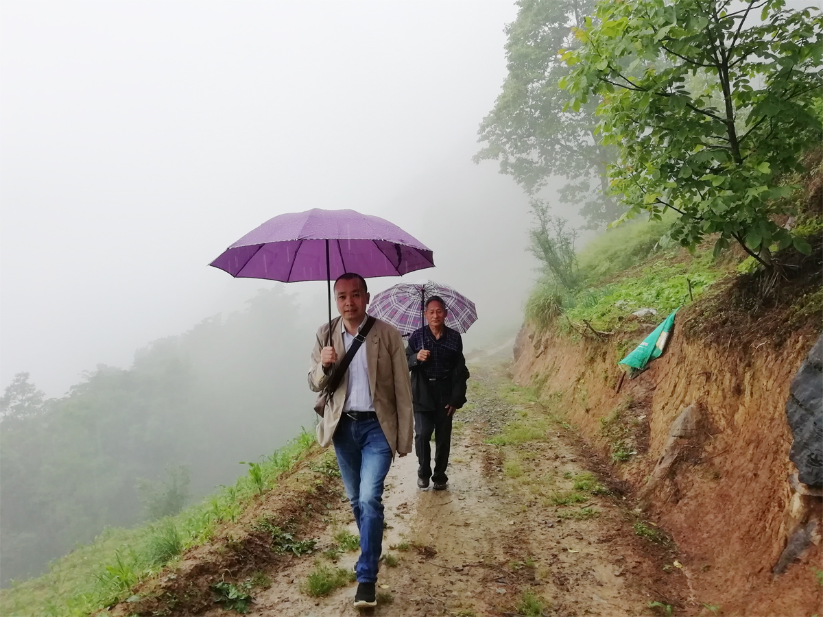車在小邱小學(xué)班主任覃老師家的路旁停下,再往下開,怕是連越野車也抗不住了。大約還有3里路,我們同一起來迎的邱爺爺走著上去。