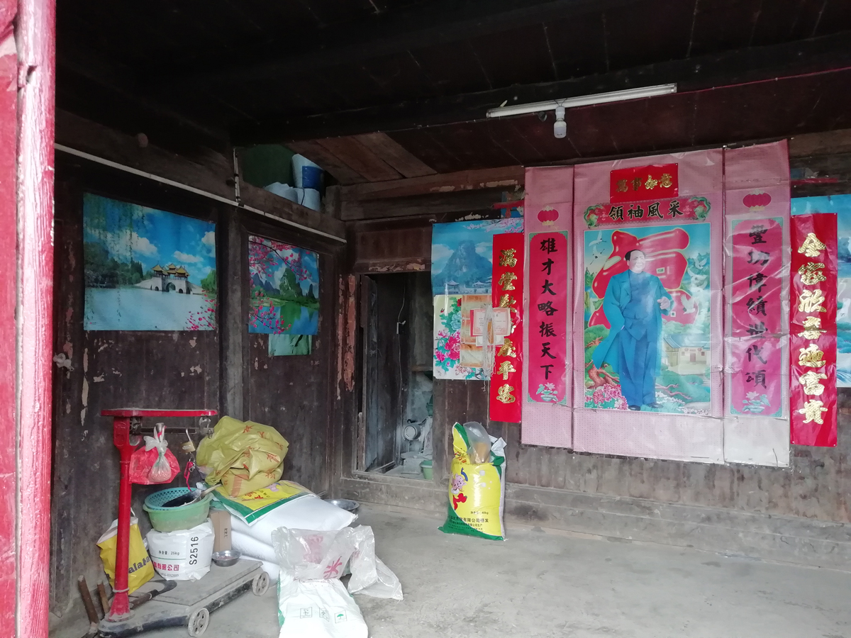 小邱家的院子,左側(cè)是三間豬圈,地上曬著木瓜,往前走便是主屋。主屋里的中堂掛著毛主席的畫像,兩側(cè)貼滿的小邱同學(xué)上學(xué)期間的獎(jiǎng)狀。