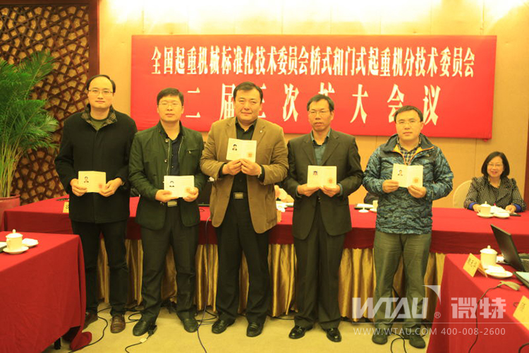 2015年11月20日,全國(guó)起重機(jī)械標(biāo)準(zhǔn)化技術(shù)委員會(huì)橋式和門式起重機(jī)分技術(shù)委員會(huì)二屆三次擴(kuò)大會(huì)議在浙江紹興順利舉行,會(huì)上橋式和門式起重機(jī)分技術(shù)委員會(huì)主任委員王順亭向微特副總經(jīng)理、技術(shù)總監(jiān)高鈺敏頒發(fā)了全國(guó)起重機(jī)械標(biāo)準(zhǔn)化技術(shù)委員會(huì)橋式和門式起重機(jī)分技術(shù)委員會(huì)(SAT/TC227/SC3)委員證書。