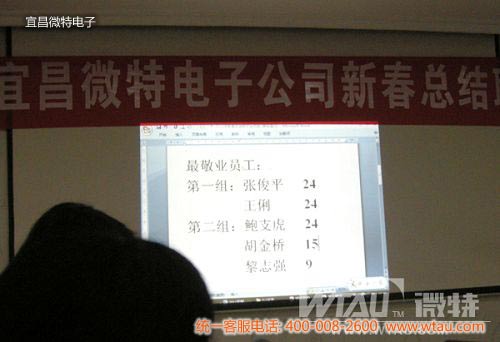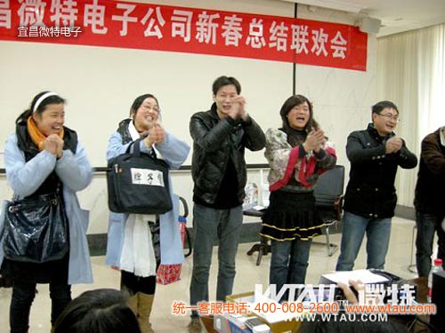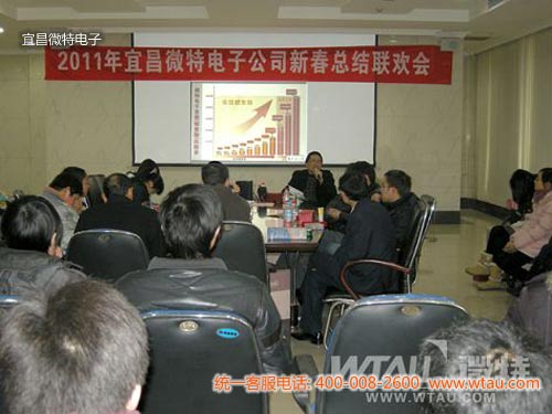 2011年1月30日,微特電子2010年總結大會暨新春聯(lián)歡會在宜昌高新技術開發(fā)區(qū)創(chuàng)業(yè)園勝利召開。公司領導與全體同仁共聚一堂共賀新春佳節(jié),總經理聶道靜帶領各部門主管分別做了年度總結及簽署了新年工作目標責任書。2010年微特電子在全體同仁的共同努力下創(chuàng)下了良好的經營業(yè)績,展望2011年,微特人有信心創(chuàng)造出更加輝煌的業(yè)績。